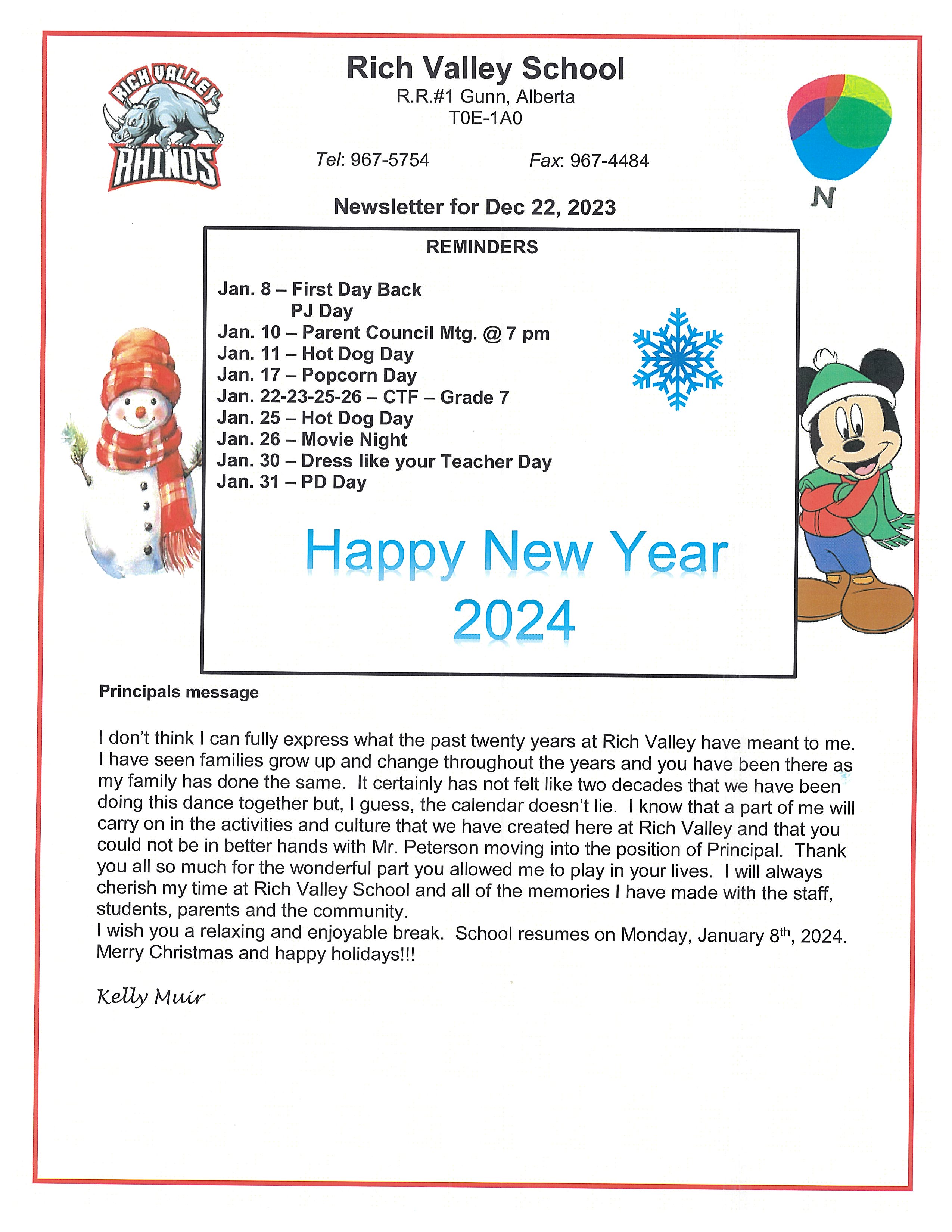 Dec. 22, 2023 Newsletter ... Check out the full newsletter on the Parent and Students page